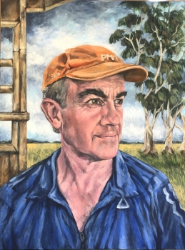 The title "watercolours" alludes to both the subject and the mediums (waterbased acrylics) used in the paintings.